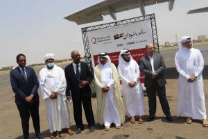 وكان في استقبال الطائرة سفير دولة قطر عبد الرحمن بن علي الكبيسي و رئيس لجنة مجابهة السيول والفيضانات بوزارة الخارجية السودانية محي الدين سالم والدكتور مفوض عام العون الإنساني أحمد البشير .