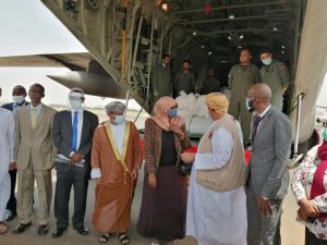 وصلت طائرتان من سلطنة عمان تحملان مواد اغاثية مختلفة وكان في استقبالهما وزير الصحة المكلف الدكتور اسامة محمد عبدالرحيم ووزيرة العمل الاستاذة الاستاذة لينا الشيخ ومفوض العون الانساني دكتور عباس فضل الله وسفير سلطنة عمان لدى السودان السيد علي سلمان الدرمكي