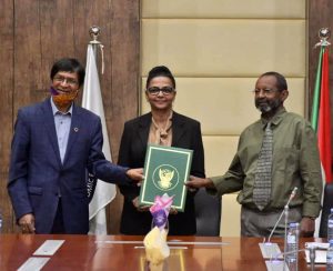 ووقعت الدكتورة هبة محمد علي احمد وزيرة المالية والتخطيط الاقتصادي المكلفة انابة عن حكومة السودان، فيما وقع عن البرنامج الدكتور سلفا راما شاندران الممثل المقيم لبرنامج الامم المتحدة الانمائي في السودان، بحضور د/ امين صالح ياسين وكيل التخطيط الاقتصادي المكلف بوزارة المالية ود/ راشد حسن مكي الامين العام للمجلس الاعلى للبيئة وعدد من المدراء .